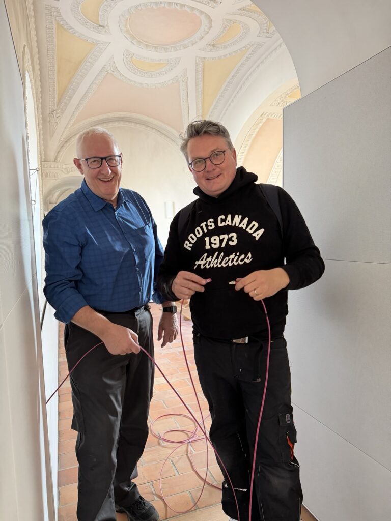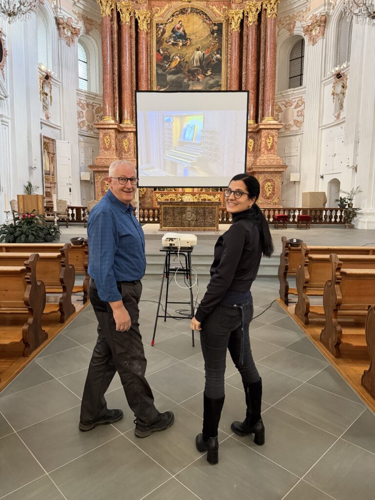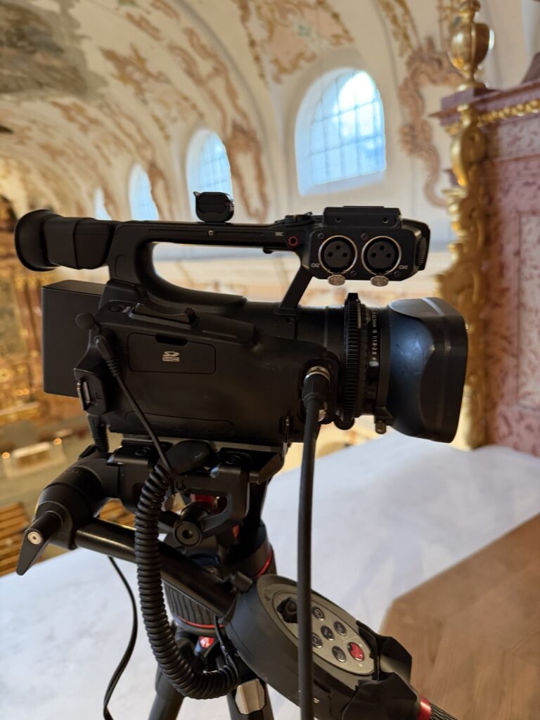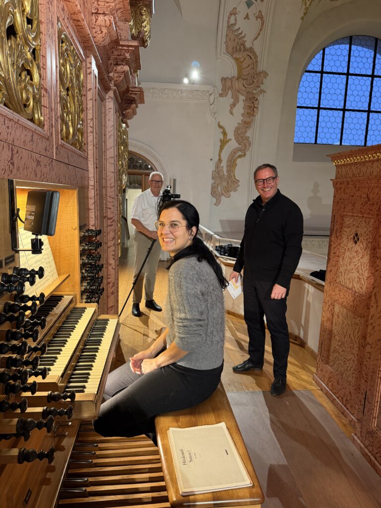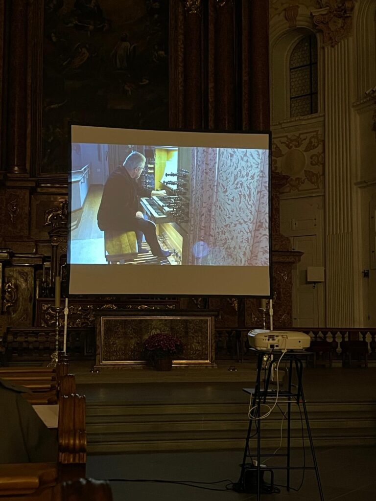 Seit dem Zyklus 2025_6 wird neu das Geschehen an der Orgel live mit der Kamera eingefangen und verzögerungsfrei via Glasfaserkabel auf eine Leinwand im Chorraum übertragen. So erhalten Sie einen unmittelbaren Einblick in das Spiel am Instrument: Hände und Füsse, Manualwechsel, Registerzüge und die feinen Abläufe, die den Klang formen. Die Projektion macht die sonst verborgene Arbeit an der Orgel sichtbar und lässt nachvollziehen, wie aus Bewegung, Technik und musikalischer Gestaltung der Gesamtklang entsteht.