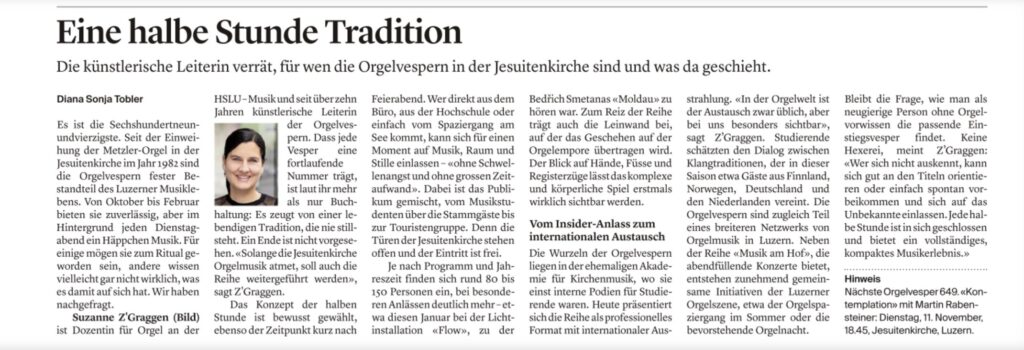 Bericht LZ zum Orgelvesperzyklus 2025_26 von Diana Tobler